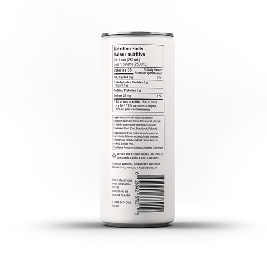 Chez Övie, nous nous engageons à utiliser uniquement les meilleurs ingrédients que la nature a à offrir. Notre collagène marin provient des eaux cristallines de l’Atlantique Nord, réputées pour sa pureté et sa qualité. Contrairement à d’autres sources de collagène, le collagène marin est exceptionnellement biodisponible, ce qui signifie que votre corps peut l’absorber et l’utiliser plus efficacement. Ce collagène, associé à des arômes entièrement naturels soigneusement sélectionnés, crée une boisson aussi luxueuse qu’efficace. Mieux encore, Övie est totalement sans sucre, ce qui vous permet de profiter d'un goût à la fois sophistiqué et rafraîchissant sans compromettre votre santé. Nous croyons en la transparence et l’excellence, c’est pourquoi chaque ingrédient d’Övie est méticuleusement choisi pour offrir un maximum de bienfaits tout en ravissant vos sens.